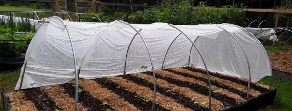 Varmints may be afraid of row cover, and when you keep it completely covering your plants, bugs stay away as well. You need to open it, as above, when plants begin to flower and require pollination.